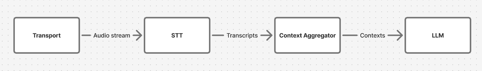 3. Context aggregator: Application code that collects transcripts and decides when a user has started and stops speaking