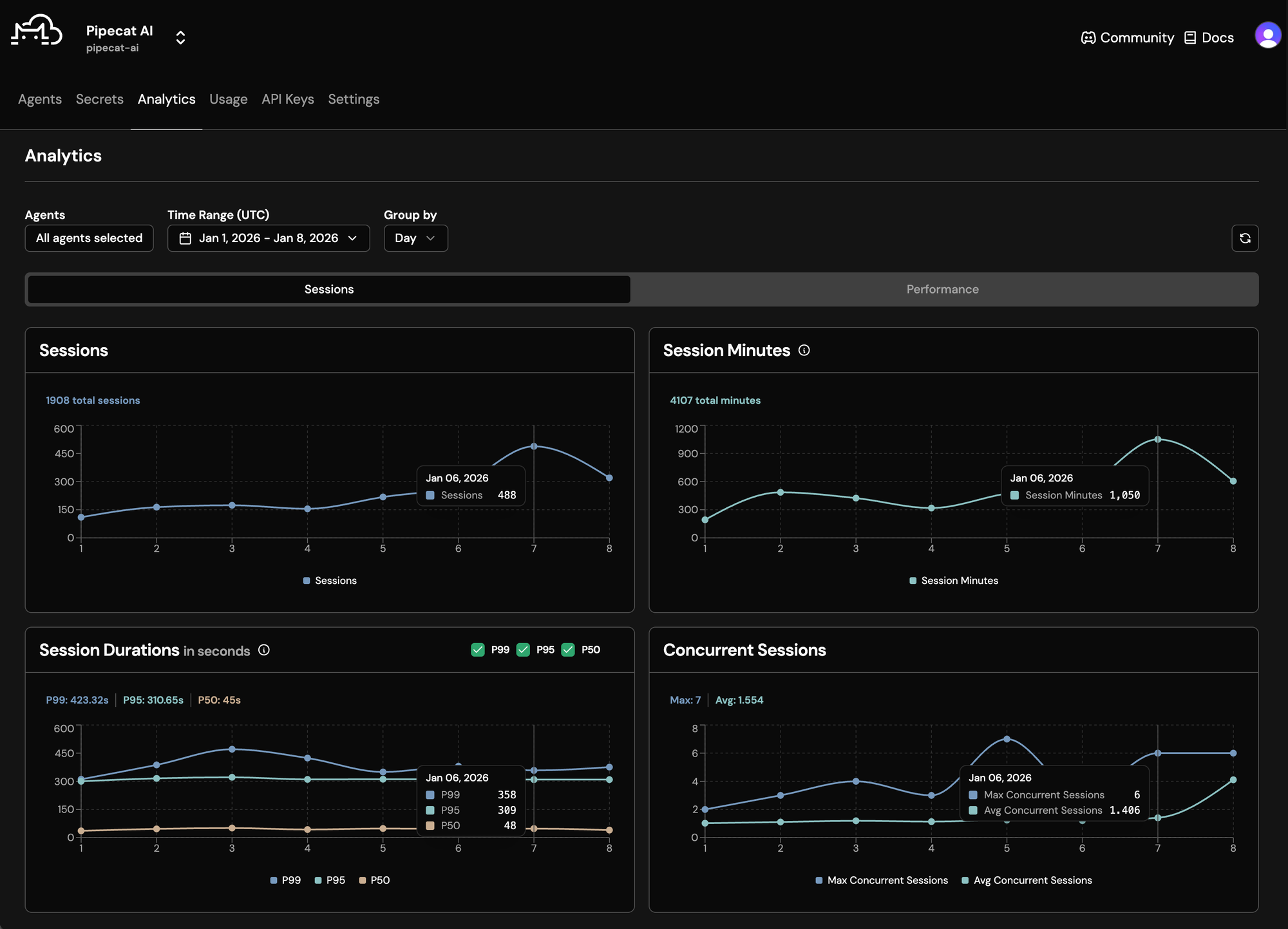 Our roadmap ahead includes further support for enterprise scale, including expanded regions and SOC 2 for Pipecat Cloud. (Daily’s WebRTC infrastructure is SOC 2 compliant.)
