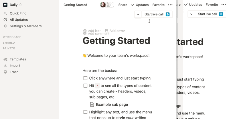 This is also how multiple people on different computers can visit the same Notion page and join the same call.